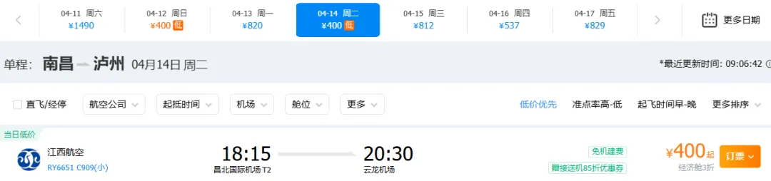 以上价格不含民航发展基金及燃油附加费