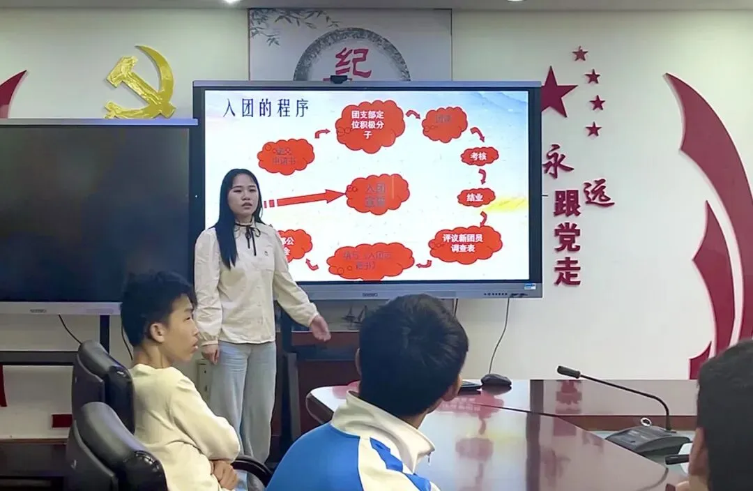 本次开班仪式在团歌中拉开帷幕。校团委干事肖慧慧老师带领团员对入团积极分子们表示热烈欢迎,希望入团积极分子们今后在团校中认真学习党史、团史,培养政治素养,树立正确的理想信念,时刻以共青团员的标准要求自己,早日成为一名团员。并对学员们提出三点要求:第一,努力做心系祖国、信念坚定的思想标兵;第二,努力做德智体美劳全面发展的学习标兵;第三,努力做遵规守纪、模范带头的遵纪标兵,时刻以团员标准规范约束自己,发挥团员的模范和示范作用。