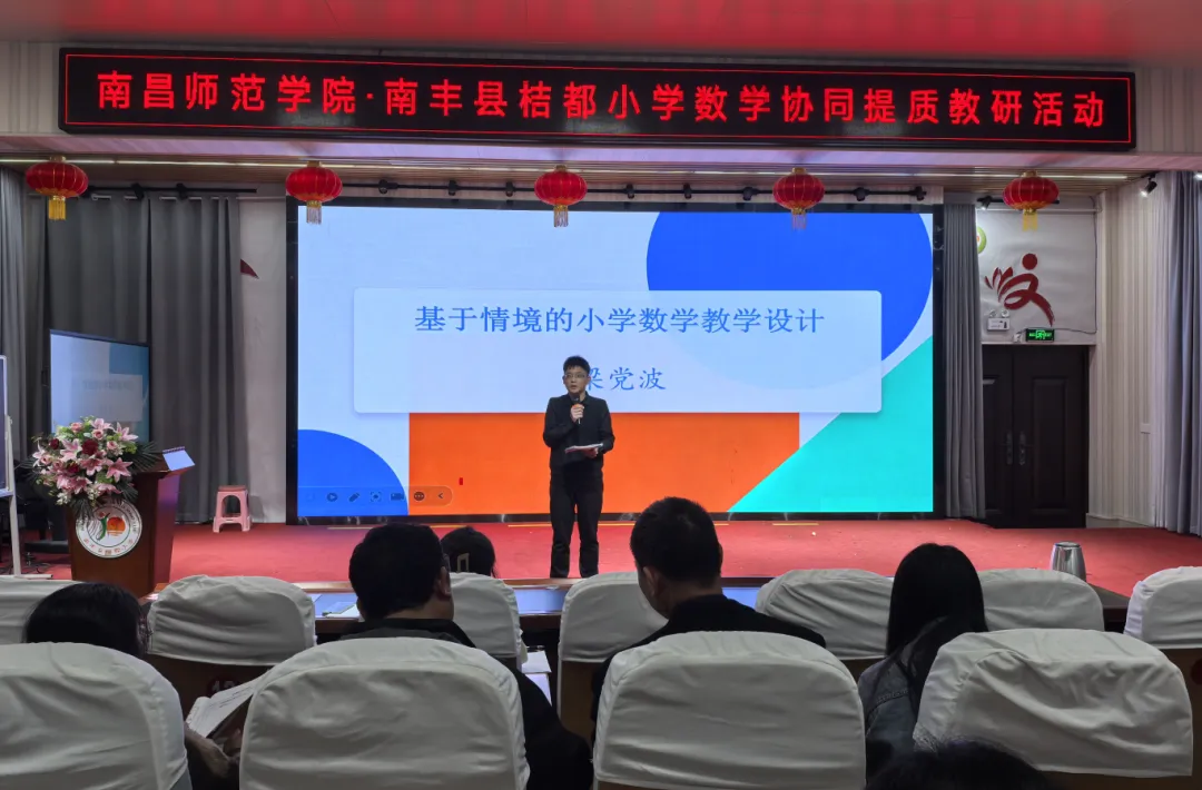 岁序常易,时盛岁新;聚力前行,征程再启。2026年4月8日,南昌师范学院与南丰县教育协同提质暨小学第二教研片区数学“同课同构”送课活动在桔都小学顺利举行。本次活动聚焦小学数学教学提质增效,搭建校地联动、片区共建的教研交流平台,特邀江西师范大学附属博文实验学校、南昌市学科带头人梁党波老师莅临指导,开展课堂点评与专题讲座,为片区数学教师带来一场务实高效的教研盛宴。