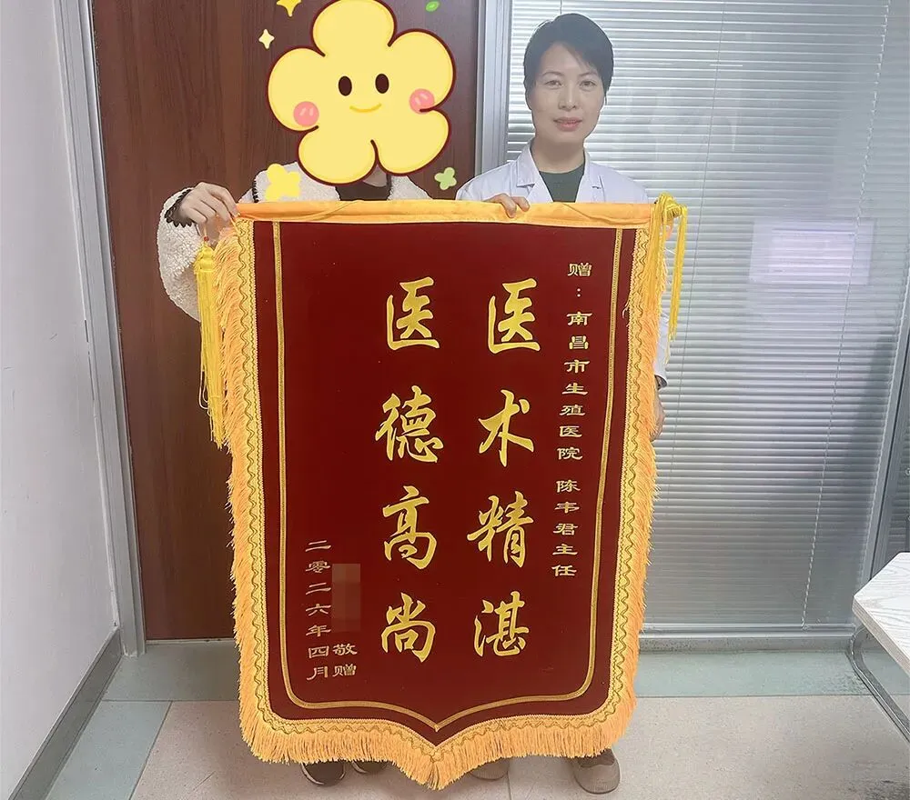 4月1日,春日融融,南昌县的苏女士专程来到南昌市生殖医院,将一面满载谢意的锦旗送到生殖医学科陈韦君主任手中,感谢其凭借精湛的医术与专业的诊疗,帮助她们结束五年的不孕求子路,成功圆梦,迎来了期盼已久的好孕。