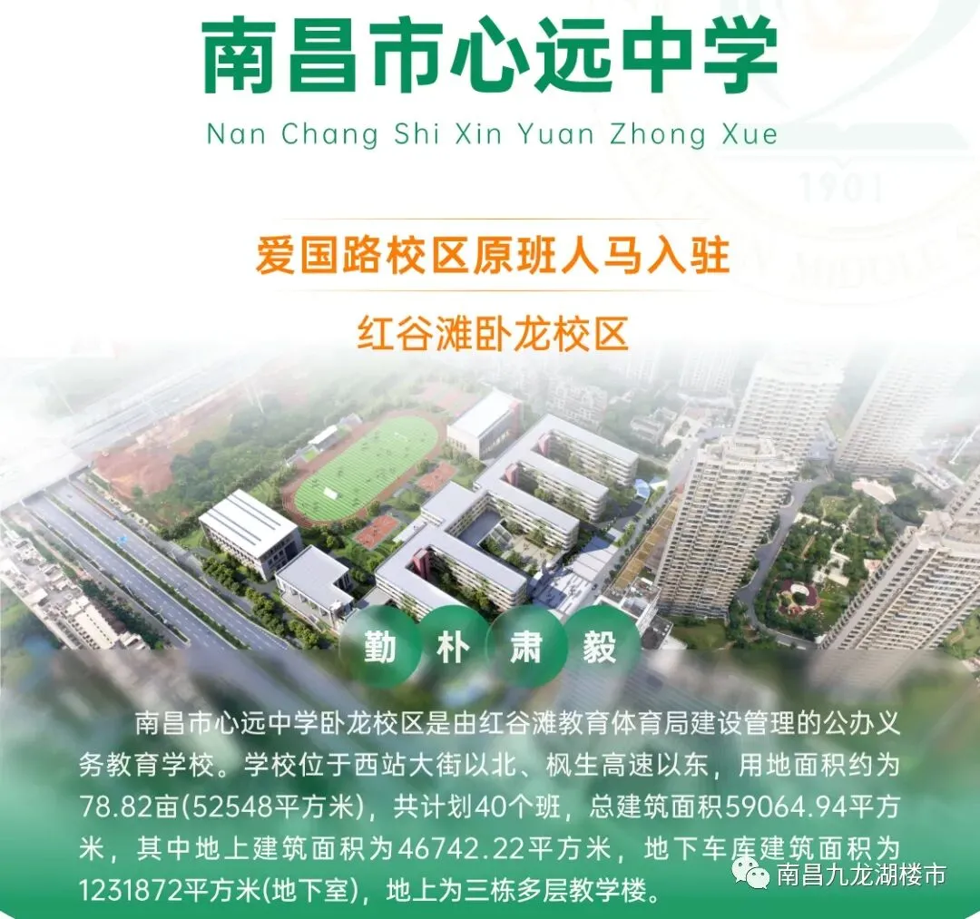 南昌市心远中学卧龙校区作为心远中学爱国路校区的延续,与南昌市第二中学强强联合,共同打造优质教育品牌。学校将秉承南昌二中“求精”文化的精髓,坚持“以学生发展为本,对学生终身负责”的办学理念,致力于培养德智体美劳全面发展的优秀人才。同时,学校将充分发挥南昌二中名校资源优势,进行资源共享、联合教研、同频教学,并结合学校自身的特色,因材施教,激发学生潜能,培养学生的个性特长。