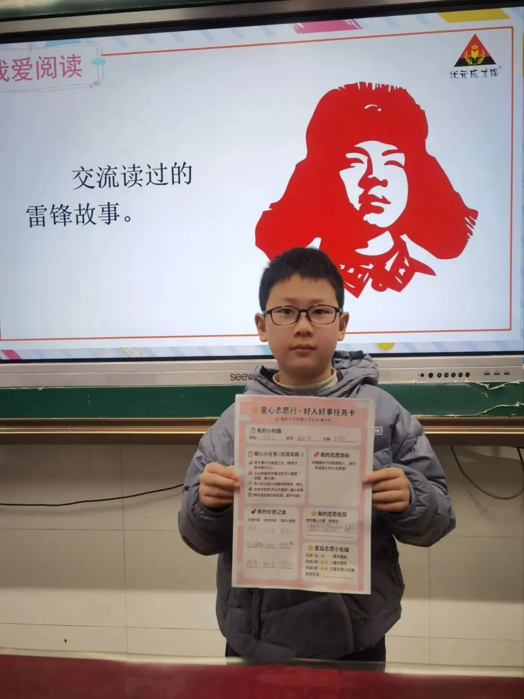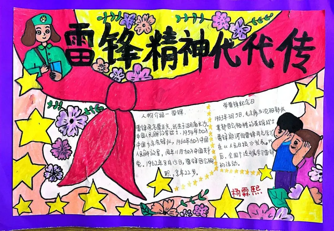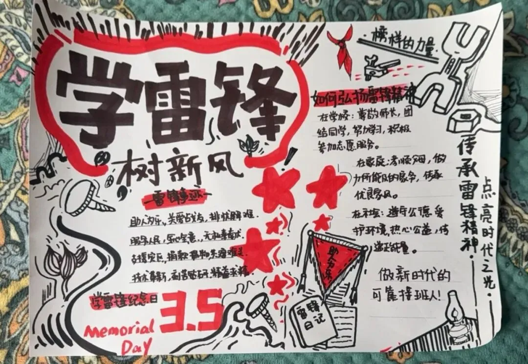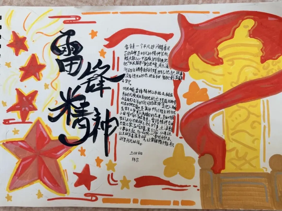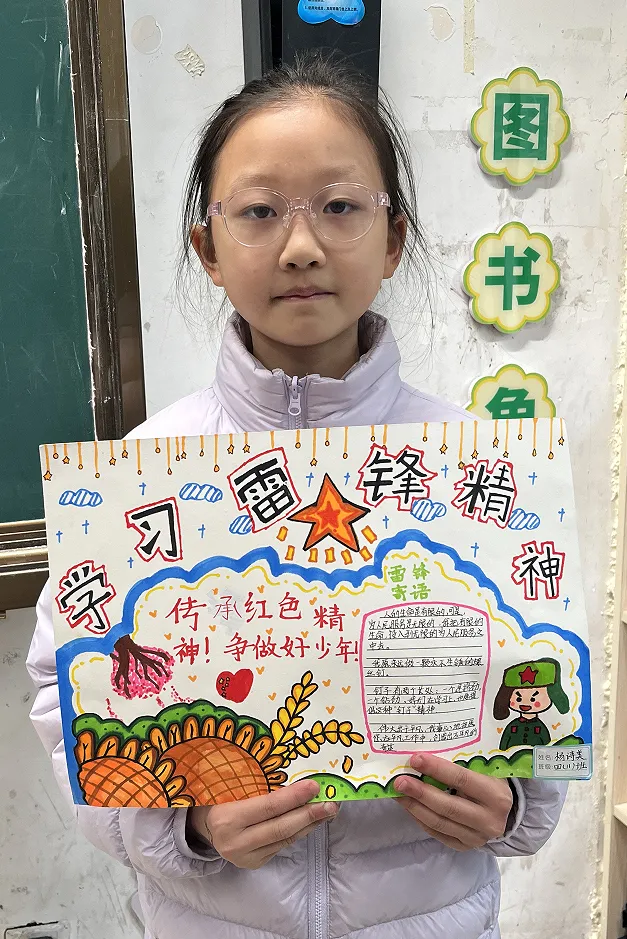 活动收官阶段,学校开展丰富多样的成果展示与反思评价活动。“雷锋精神永流传”主题展览上,手抄报、行动日志册、精神宣传画等作品纷纷呈现,全方位展现学生的收获与成长感悟;班级“雷锋行动交流会”上,各小队代表分享实践中的感动瞬间与成长心得,真挚的讲述打动在场师生,让雷锋精神的种子在同学心间生根发芽。