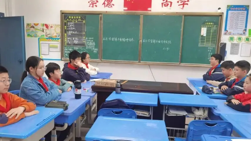 在深入探究环节,各雷锋行动小队围绕“雷锋精神的时代实质”展开专题讨论,结合校园生活实例,解码新时代雷锋行为内涵。低年级学生踊跃分享身边的“小雷锋”暖心事迹,发现身边的善意与美好;中年级学生比对雷锋事迹与当代模范案例,巧用数学图表、手绘美术小报展示探究成果;高年级学生借助信息技术搜集当代雷锋式人物事迹,在交流探讨中深刻领悟雷锋精神实质。