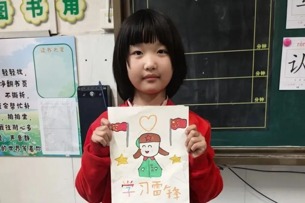 活动启动阶段,学校发布“新时代雷锋追光者”征集令,各班迅速组建“雷锋行动小队”,通过国旗下演讲、雷锋精神导学课、观看雷锋题材影像等形式,正式开启雷锋精神学习之旅。学校针对不同年级学生认知特点,分层设计学习任务:低年级开展“我心中的雷锋”绘画、故事涂色卡创作及雷锋小故事背诵活动;中年级梳理雷锋事迹时间线,提炼奉献、友善、勤俭等词汇,设计制作雷锋主题精美书签;高年级精读雷锋日记、撰写心得体会,深入探讨雷锋精神的当代价值,为后续实践筑牢认知根基。