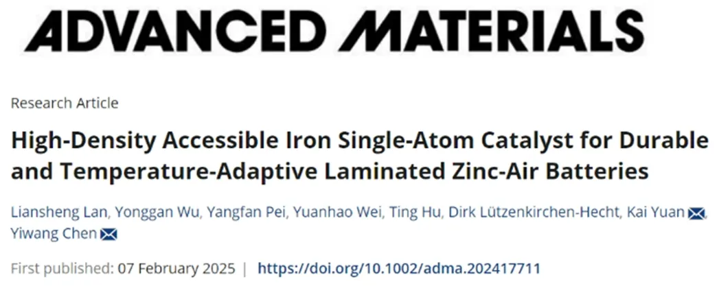南昌大学陈义旺/袁凯教授Adv. Mater.: 高密度可及Fe单原子催化剂助力长寿命宽温域叠片式锌-空气电池