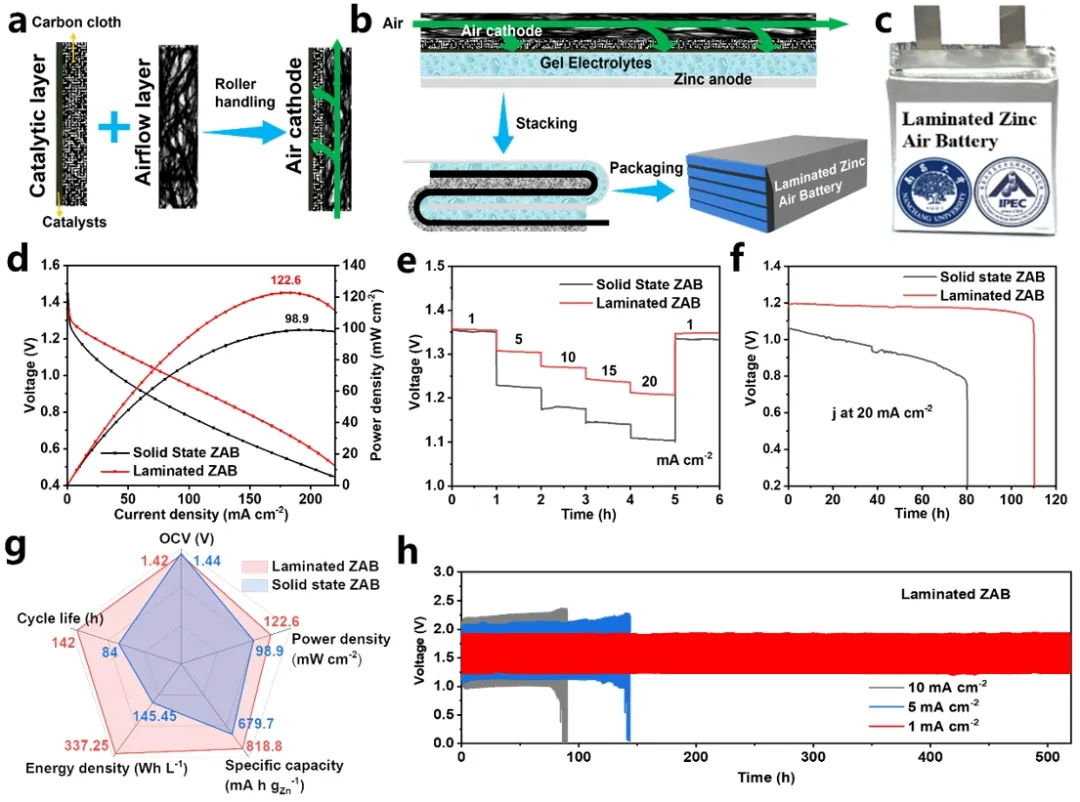 h),优于普通的固态电池器件。图4 叠片式锌-空气电池的制备流程及其电池性能测试