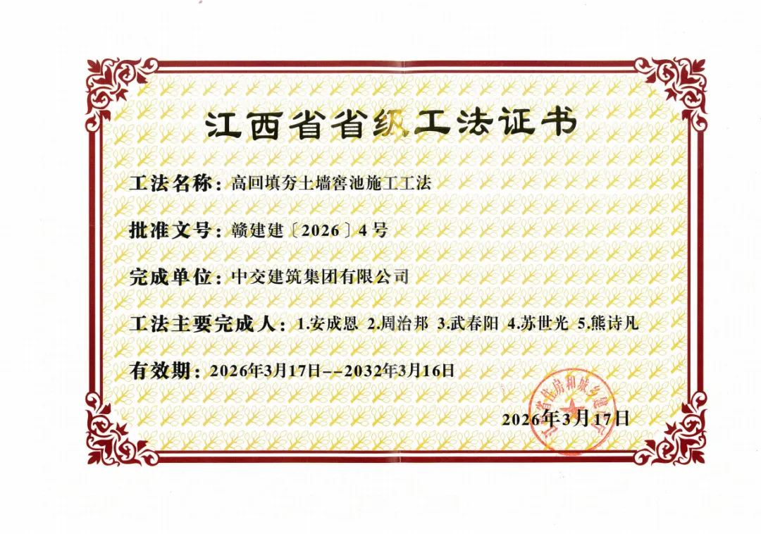 近日,南昌东站交通路网项目申报的《高回填夯土墙窖池施工工法》顺利通过江西省工程建设协会评审,荣获2026年度江西省工程建设省级工法。