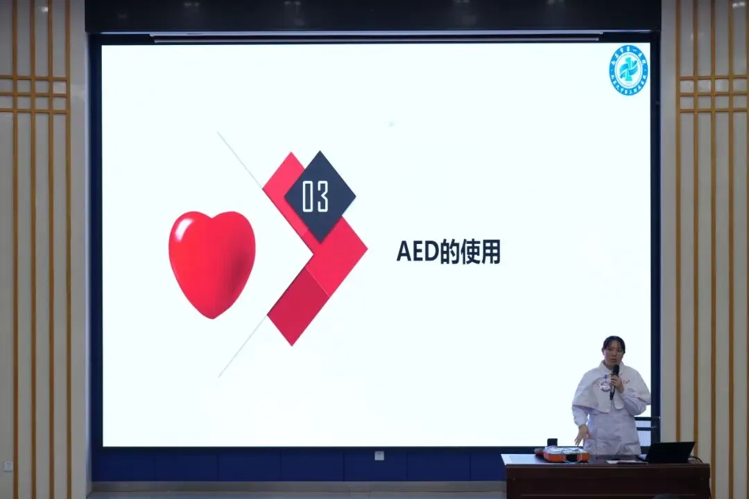本次培训采用“理论精讲+实景演练”模式,涵盖心肺复苏(CPR)、海姆立克急救法及AED使用三大专题,针对性破解校园突发急救难题。黄芳导师结合真实案例,用通俗易懂的语言,细致拆解三大急救技能的核心要点,让师生听得懂、学得会、记得牢。