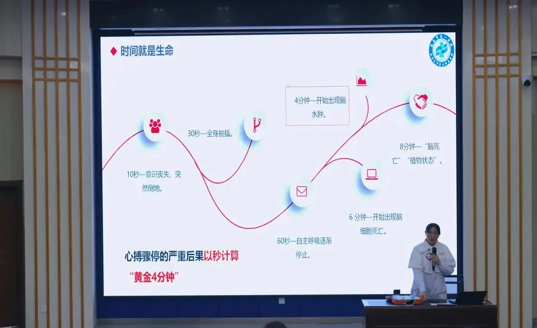 生命重于泰山,急救始于足下。为筑牢校园安全防线,切实提升师生应急救护能力,4月8日,我校联合九龙湖社区卫生服务中心特邀南昌市第一医院专业急救导师黄芳开展师生急救技能专项培训,让实用急救技能走进校园,守护学子平安。