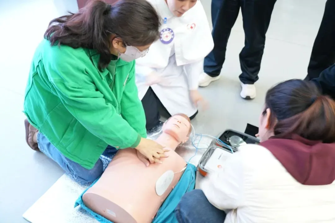 在AED培训环节,黄芳导师详细讲解了AED的操作流程、使用时机、电极片粘贴位置以及与CPR配合的规范步骤,重点强调了心脏骤停后的“黄金4分钟”对挽救生命的关键作用,进一步提升了教职工的应急处置能力,为打造更加可靠的校园安全防线奠定了坚实基础。