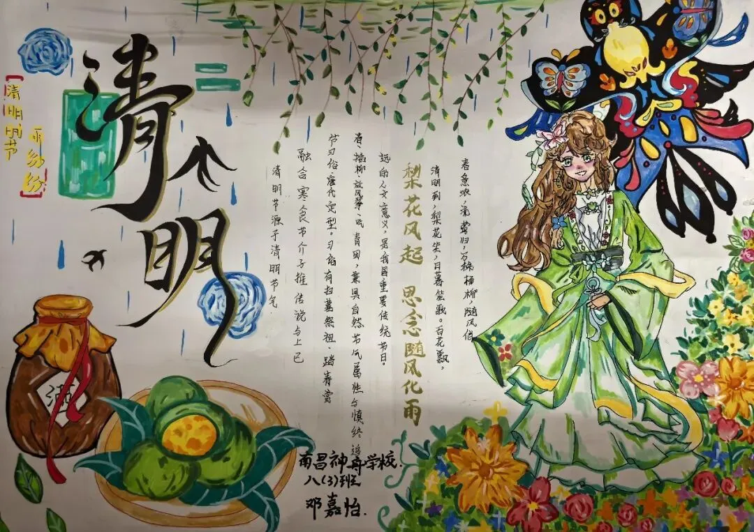 春风拂柳柳含烟,又是一年清明时。作为中华民族重要的传统节日,清明节承载着慎终追远、缅怀先烈的文化内涵,也蕴含着亲近自然、珍爱生命的美好寓意。为让同学们在假期中深入感受清明背后的文化底蕴,南昌神舟学校以笔墨为媒,精心组织清明节主题手抄报创作活动。
