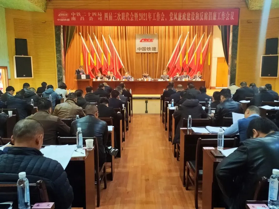 2月28日8时30分,在雄壮的国歌声中,中铁二十四局南昌公司四届三次职代会暨2021年工作会、党风廉政建设和反腐倡廉工作会议在公司五楼礼堂拉开帷幕。会议主要任务是深入学习贯彻习近平新时代中国特色社会主义思想、党的十九届五中全会和股份公司、集团公司系列会议内容,总结2020年主要工作,分析当前形势,部署2021年重点工作任务,统一思想、坚定信心、乘势而上,加快迈入高质量发展新征程。
