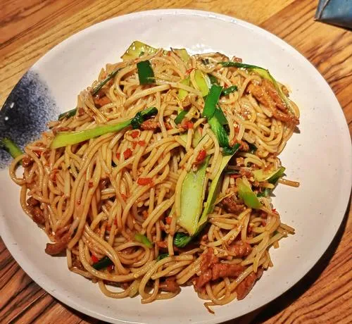 到了晚上,南昌的辣就换了一个形态,从拌粉变成了炒粉,炒粉是南昌夜宵摊上的硬通货,老板在大铁锅里翻炒,辣椒、青菜、肉丝、鸡蛋,所有东西在高温下快速翻动,粉条吸饱了油和辣椒的香气,出锅的时候滋滋作响,你端起来吃第一口,那个辣是带着锅气的辣,不是单纯的辣椒味,是高温爆炒之后,所有食材混合出来的复合香味,这个香味里有辣,但辣只是其中一部分,更多的是那种炒出来的烟火气。