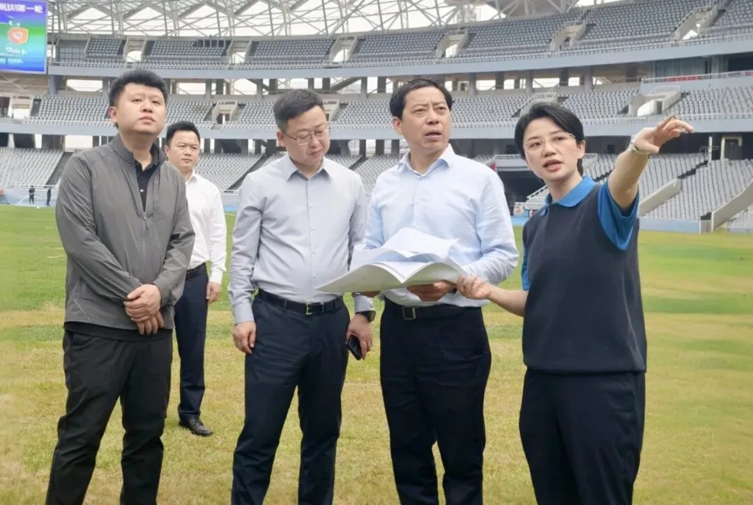 万义辉先后实地查看主体育场、功能用房等重点区域,详细了解草坪养护、跑道收尾、功能用房完善等进展情况,现场调度推进收尾工作。