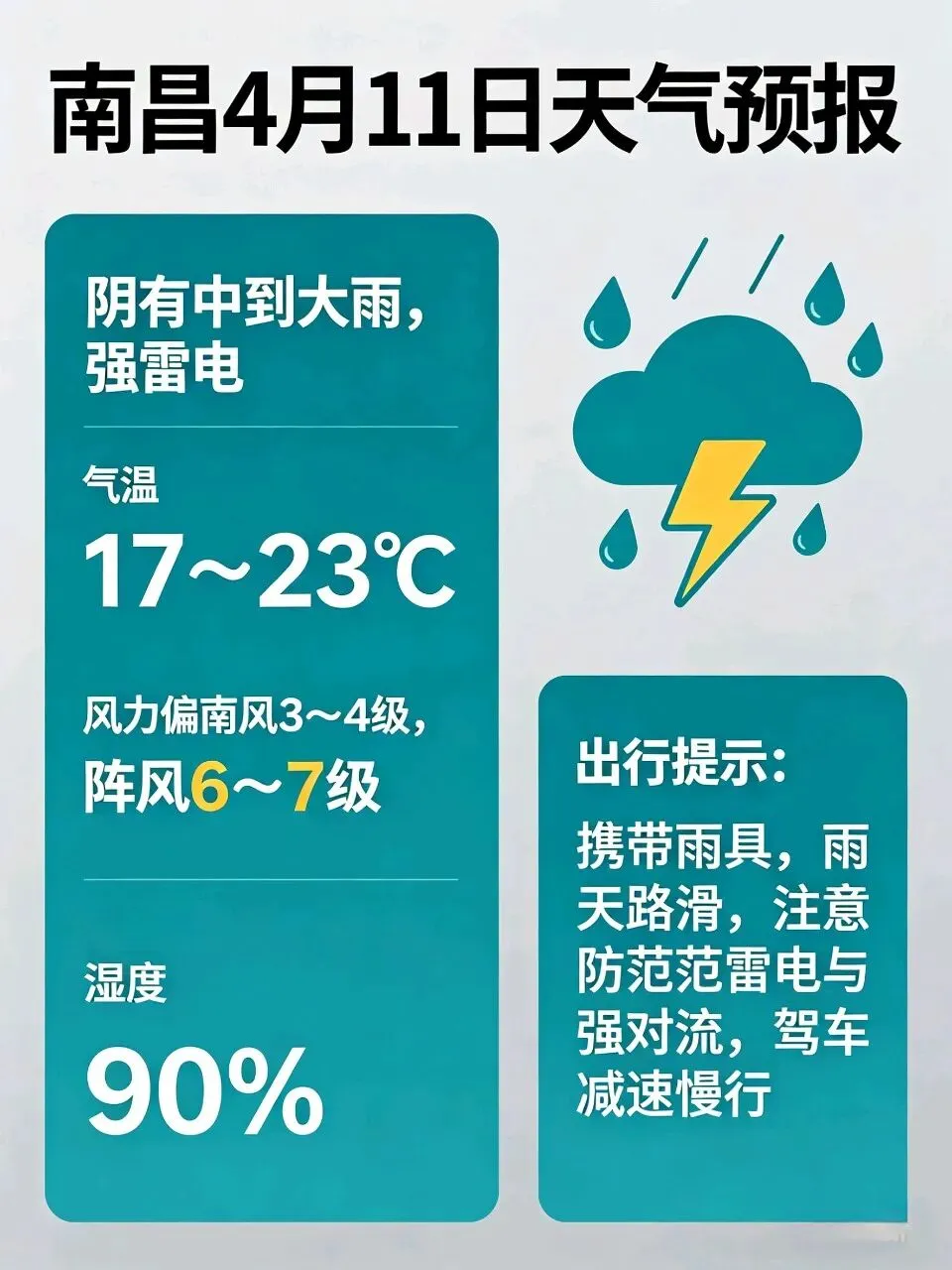 >23℃!暴雨!南昌明天天气预报