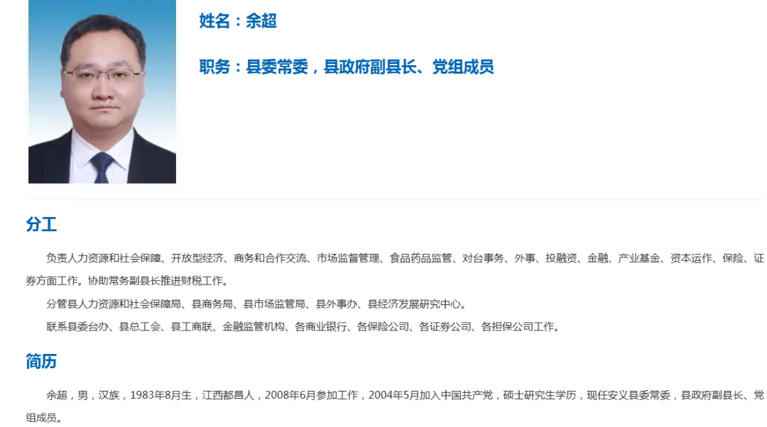 南昌市安义县委领导班子分工及简历