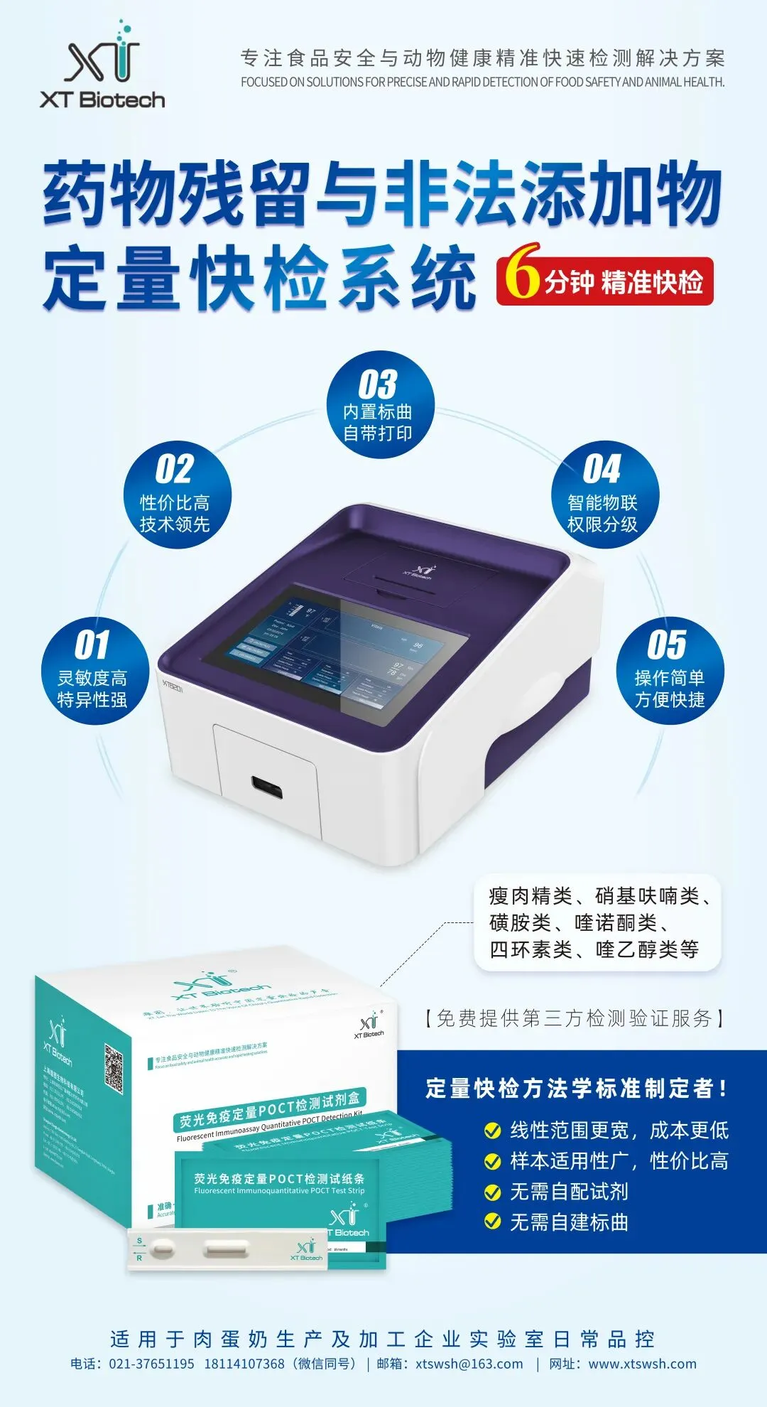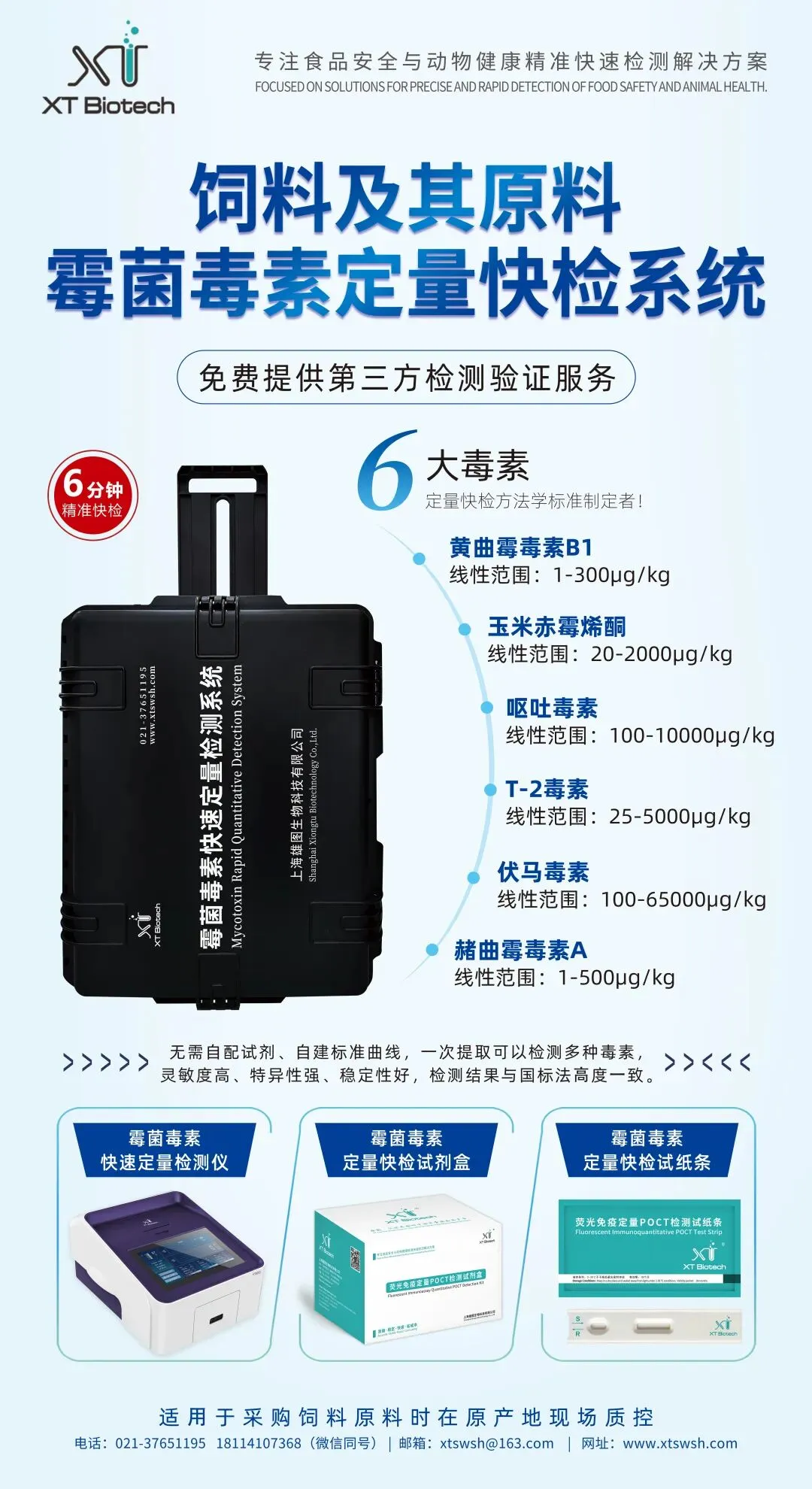 上海雄图生物科技有限公司成立于2016年,是一家立足于食品安全与动物健康行业的高新技术企业,致力于为该领域用户提供精准、快速、便捷、低成本的检测产品和专业、系统、周到的服务方案。上海雄图自主开发的霉菌毒素与药物残留二合一荧光免疫定量POCT检测系统、重金属快速定量检测系统、动物疾病荧光定量PCR快速检测系统等系列产品,适用于粮油米面、肉蛋奶、饲料及饲料原料生产加工企业,畜禽、水产动物养殖企业,食品安全监管和动物疫病防控机构等。