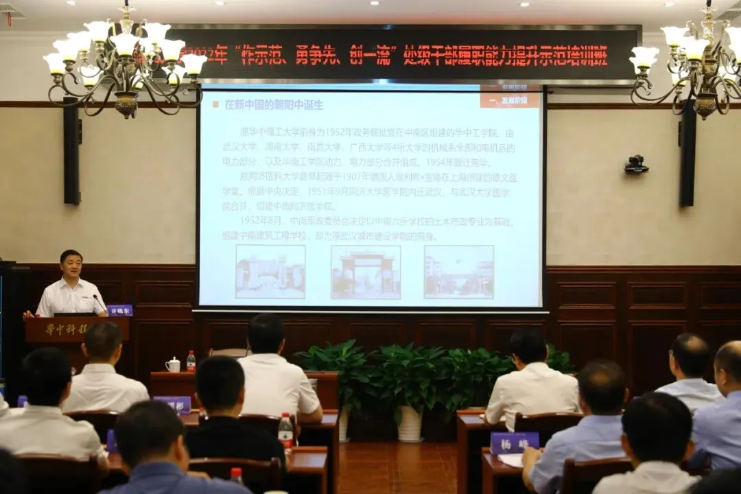 8月19日上午,南昌大学2022年“作示范、勇争先、创一流”处级干部履职能力提升示范培训班(第三期)顺利结业。这标志着华中科技大学教育培训学院承办的“南昌大学处级干部履职能力提升示范培训班”项目圆满完成。该项目以“专题讲座+调研交流”的形式举办,分三期:第一期和第三期分别于7月31日至8月5日、8月14日至8月19日,由南昌大学校长周创兵、党委书记喻晓社分别带队,在华中科技大学举办,学员均为南昌大学正处级及以上干部;第二期为8月1日至8月3日在南昌大学设直播分会场,在华中科技大学组织开展远程授课,学员为南昌大学近三年来提任的副处级干部。南昌大学共256名处级及以上管理干部参加了学习和交流。该项目的实施,得到了华中科技大学校领导的大力支持。校党委书记李元元、校长尤政分别会见了喻晓社、周创兵一行。南昌大学校领导李德平、邓晓华、万继峰、刘成梅、刘耀彬,党委常委徐光兵、饶勇、滕勇前分别到华中科技大学参加培训学习与调研交流。华中科技大学校领导湛毅青、马建辉、许晓东、张新亮分别参加有关交流;许晓东两次主讲第一课“华中科技大学发展模式”。