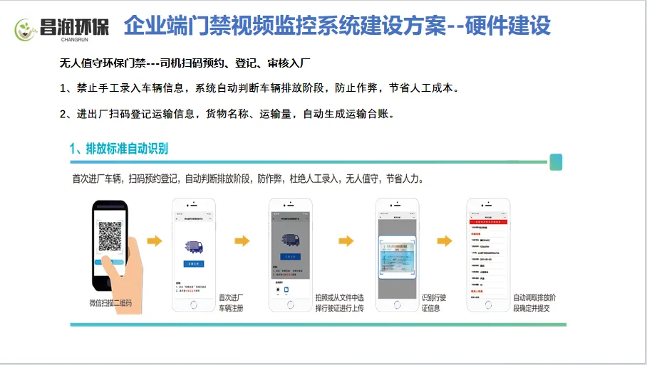 监测对象 | 对人员(通过门禁卡、生物识别等方式)和车辆的出入权限进行管理,重点在于确认身份和通行资格。 | 主要针对车辆,特别是高排放的货运车辆、工程车辆等移动污染源,关联车辆的环保属性,如排放标准、尾气检测结果等。 |
