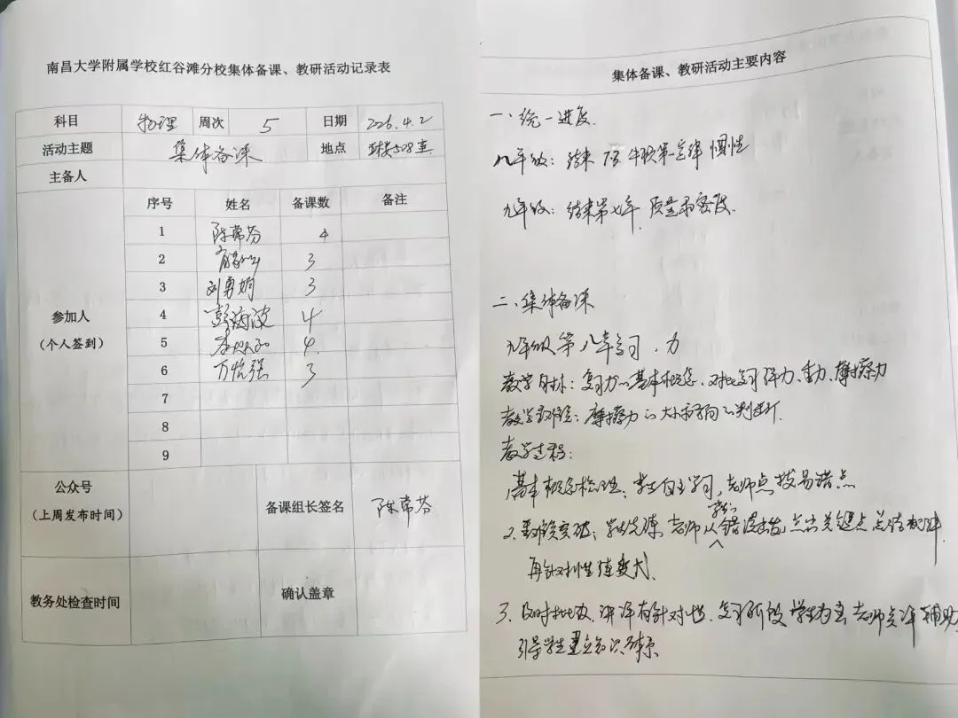 围绕九年级《第八章 第3节 力》等核心教学内容,组内教师展开深度研讨,共同打磨优质教学设计,实现资源共享、优势互补。