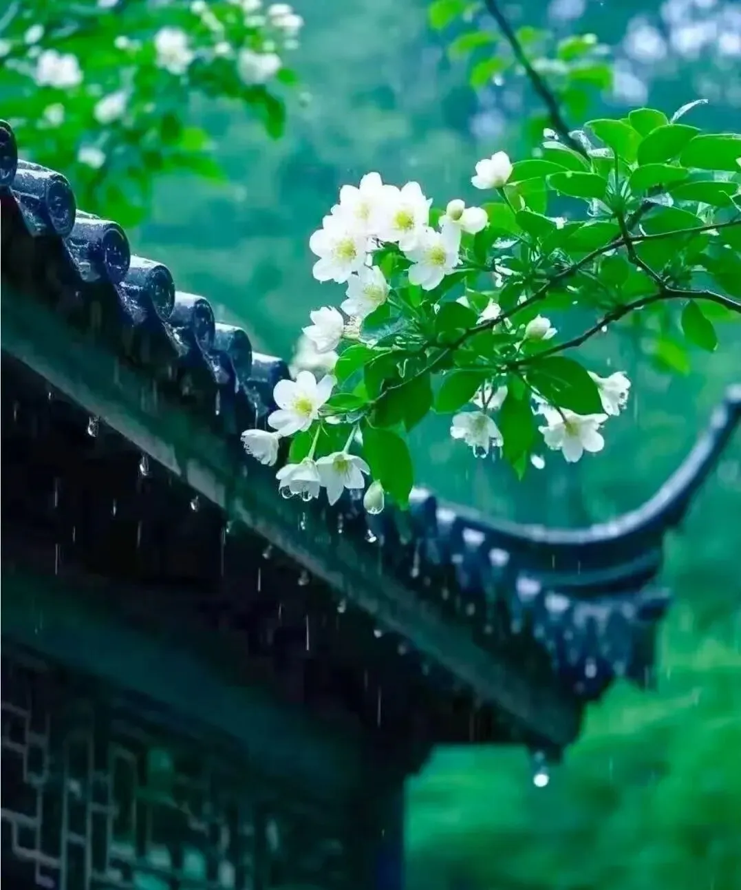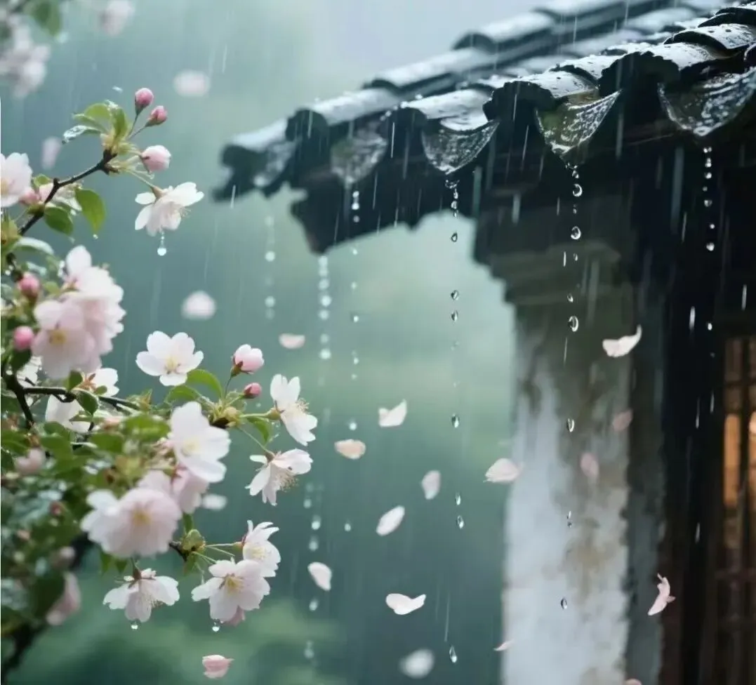 春水向东流逝,雨花倒逼