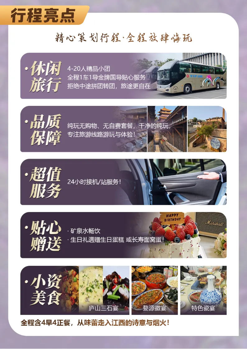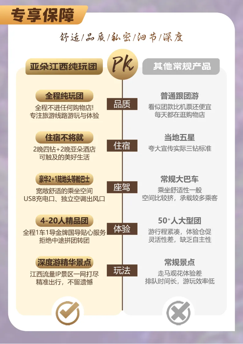 :全程纯玩0购物、0加点、0自费套餐,干净的纯玩,专注旅游线路游玩与体验!