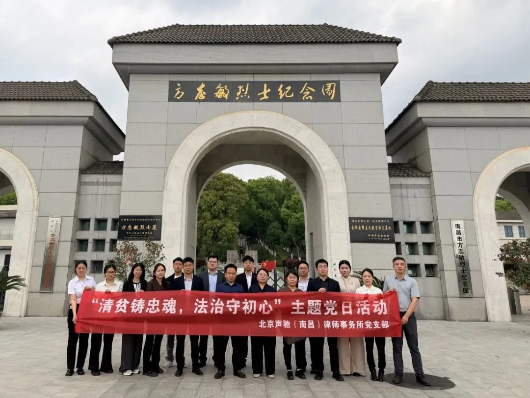 为传承红色基因、赓续精神血脉,以党建引领筑牢法治初心,4月9日,北京声驰(南昌)律师事务所党支部联合文化建设委员会,在党支部书记周萍,文化建设委员会副主任黄姗、朱婧雅的带领下,组织十余位律师前往方志敏烈士陵园,开展“清贫铸忠魂,法治守初心”清明缅怀英烈主题党日活动,以实际行动缅怀革命先烈、汲取奋进力量。