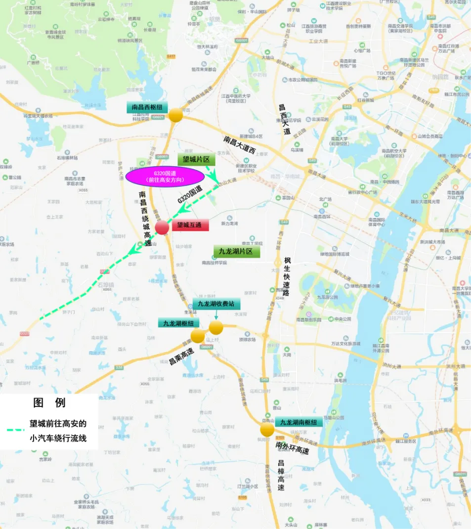 1、九江往南昌方向:南昌西绕城高速→南昌西枢纽→南昌西收费站→南昌大道西→G320国道→望城片区