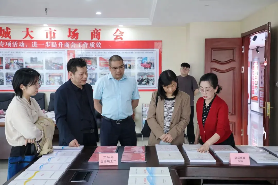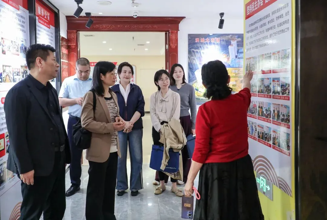 在洪大商会办公场所,秦桂芳主席一行参观了商会党建、会建宣传廊、仔细查阅了党建规范化建设资料、商会创建“四好”商会工作台账等,详细了解洪大商会的发展历程以及商会自成立以来的建设成果与运行情况。秦桂芳主席对洪大商会党建会建融合发展、规范化制度化的建设、丰富多彩的会员活动给予了高度评价。