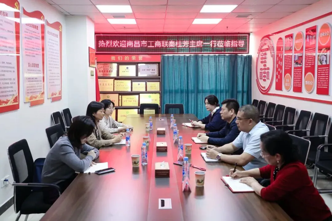 4月9日,南昌市工商联主席秦桂芳,市工商联党组成员、秘书长刘欣,市工商联办公室副主任张心筠一行赴我会调研指导。我会会长龚林、党总支书记江冲腾、轮值会长杨青芸、秘书长邵莉萍全程陪同并参加座谈。