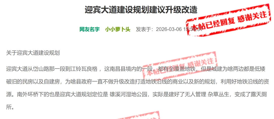 迎宾大道从岱山路那一段到江铃瓦良格,这南昌县境内的一段,都有全覆盖地铁,但是城建为啥两边都是低矮破旧的民房以及自建房,为啥县政府一直不做升级改造打造地铁沿线的商业以及新的规划,利用好地铁沿线的资源。