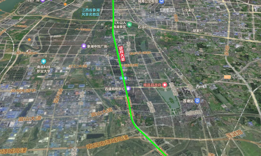 迎宾大道(岱山路一江铃:瓦良格)位于南昌县中心城区范围,周边串联着有城北、旧城、银三角及迎宾大道以西片区,是联通县城与南昌市主城区的一条重要的城市主干道,也是南昌县对外形象展示的重要窗口。