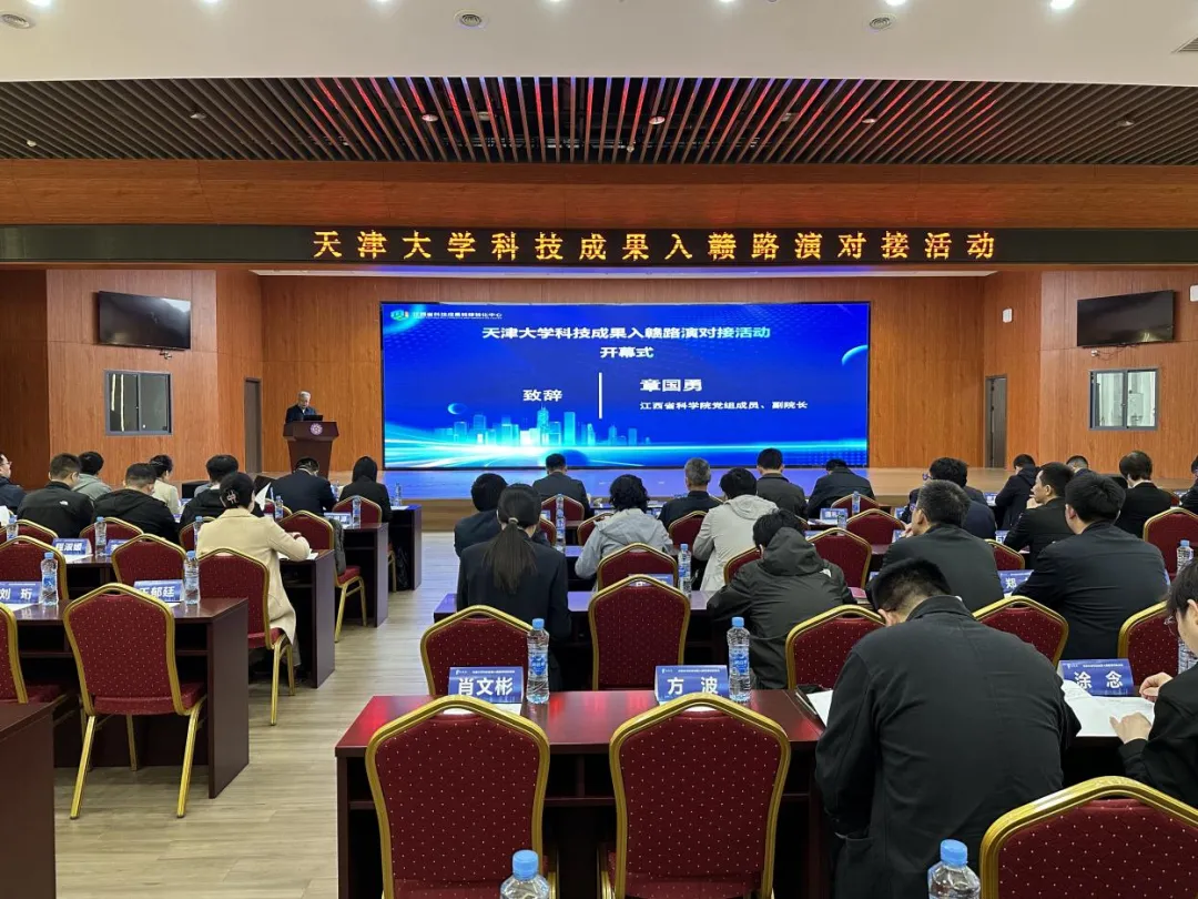 2026年4月8日,由天津大学、江西省科学院指导,江西研究院联合江西省科技成果转移转化中心、南昌高新技术产业开发区管委会、南昌科技大市场共同主办的“天津大学科技成果入赣活动”在南昌举办。江西省科学院党组书记、院长,江西研究院执行院长严青松会见活动嘉宾,天津大学党委常委、副校长王天友,江西省科学院党组成员、副院长章国勇,南昌高新区党工委委员、管委会副主任彭春辉出席活动并致辞。省市有关部门、高校院所、金融机构以及相关企业代表近150人参加活动。