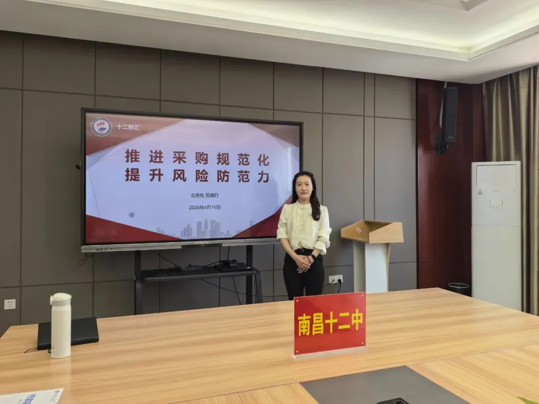 会上,总务处主任殷婧丹以“推进采购规范化 提升风险防范力”为题作专题分享。她紧扣上级政策要求,系统解读江西省财政厅、南昌市教育局采购管理相关文件,精准对比新旧政策核心变化,清晰梳理采购全流程关键节点,并围绕局纪检备案、局采购办备案、招标代理机构选择等重点环节,明确操作规范、细化工作要求,为学校规范采购流程、防范廉政风险、保障资金安全提供了务实管用的实操指引。