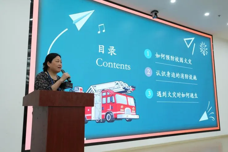 消防宣讲员围绕校园火灾预防、消防设施识别及火场逃生方法等内容进行讲解,帮助师生增强日常防范意识,并提醒大家:严禁携带火种进入校园,做到人走断电,发现安全风险及时报告,引导师生知风险、明责任、会防范。