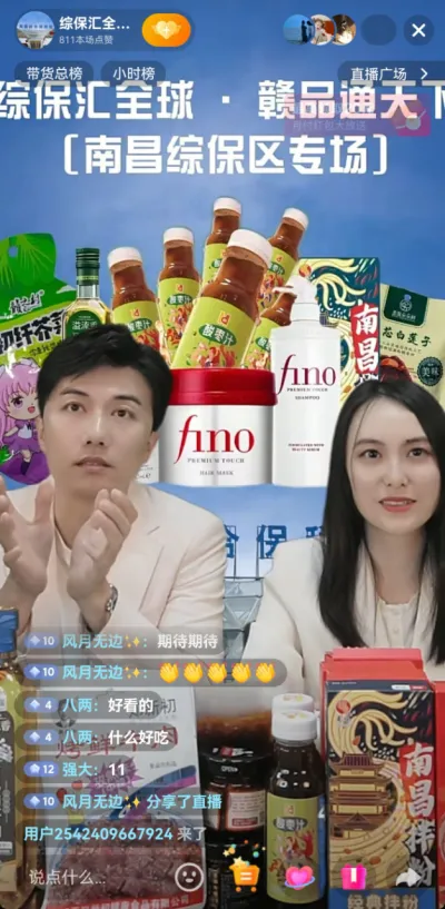 4月10日,南昌综合保税区首场“综保汇全球·赣品通天下”主题直播活动正式开播。本次直播人气火爆、成绩亮眼,累计观看人数破万,实时在线观看人数峰值上千,成交件数突破百件,实现人气与销量双丰收。直播由南昌保税产业投资发展有限公司倾力打造,以“代言江西、链接全球”为核心,精选数十款江西本土名优特产,为广大消费者带来了一场正品保障、福利拉满的赣品消费盛宴,也为南昌综保区未来探索“保税仓+直播”新业态奠定坚实基础。