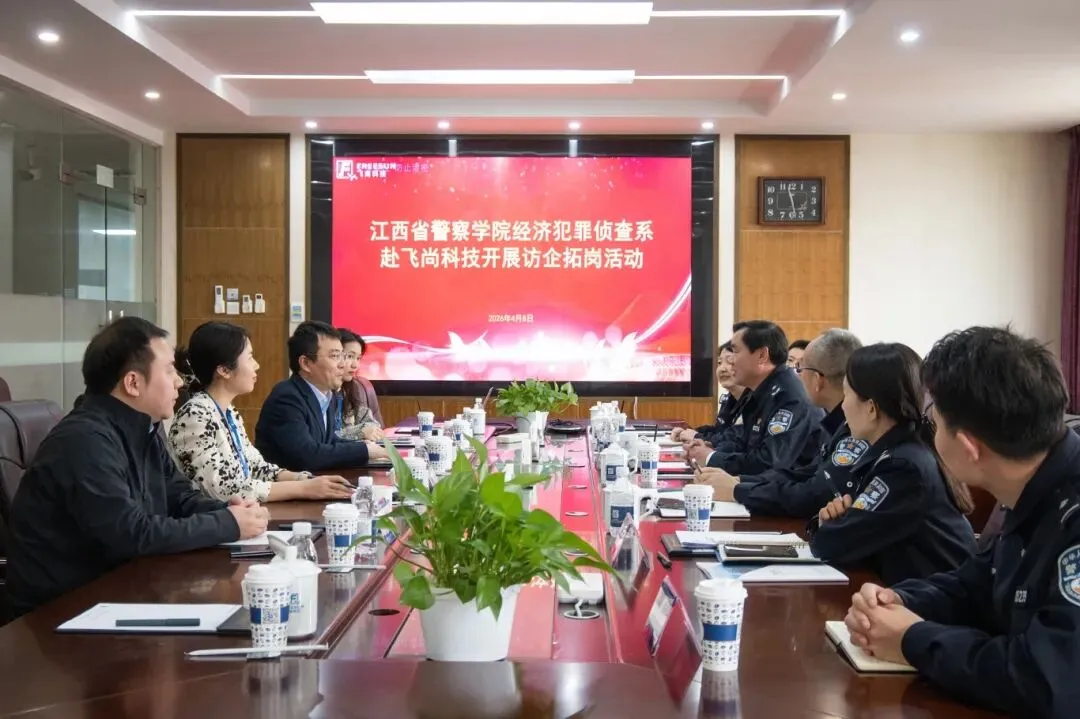 为扎实推进校局企合作深化部署,持续健全协同育人体系,创新人才培养路径,拓宽毕业生就业渠道,4月8日上午,经侦系主任王能武一行赴南昌县公安局、飞尚科技有限公司开展校局合作交流及访企拓岗活动。南昌县公安局党委副书记、政委吴斗果,党委副书记、常务副局长钱刚参加活动。
