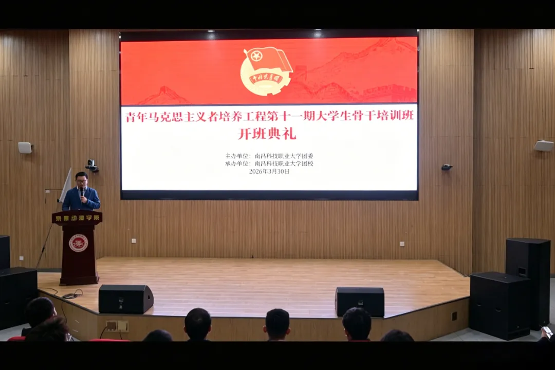 为切实强化青年学生政治引领,以实践育人促进青年成长,着力打造政治坚定、本领过硬、勇于担当的青年骨干队伍,3月30日,南昌科技职业大学第十一期“青年马克思主义者培养工程”大学生骨干培训班开班典礼在图书馆二楼报告厅隆重举行。