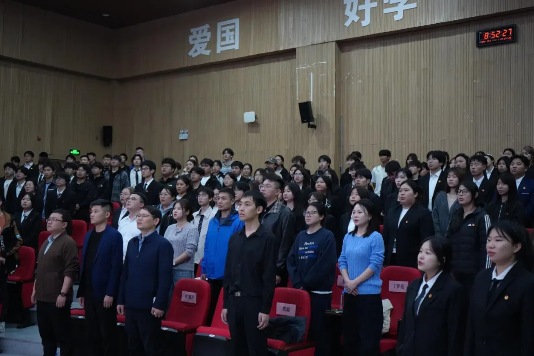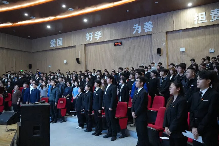 开班仪式在庄重肃穆的氛围中拉开帷幕,全体参会人员起立,奏唱《中华人民共和国国歌》。激昂的旋律响彻整个报告厅,承载着青年学子的爱国情怀与责任担当,让现场每一位参与者都接受了一次深刻的爱国主义熏陶,进一步凝聚起青春奋进的力量。