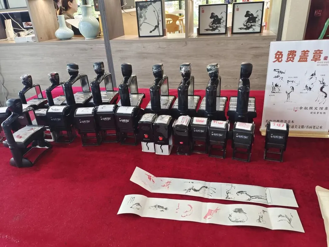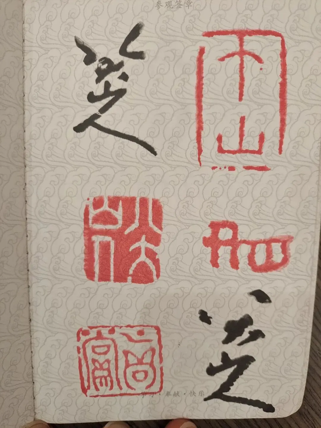 值得点赞的是馆里的免费印章一长排,还有工作人员(一位年长的安保)帮忙盖,印章有八大山人钦印,也有从书画作品中挑选的小画,足以满足你盖章需求,我挑了几个喜欢的,其中最爱造型似“哭之”、“笑之”的钦印。
