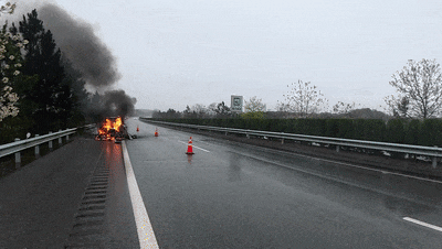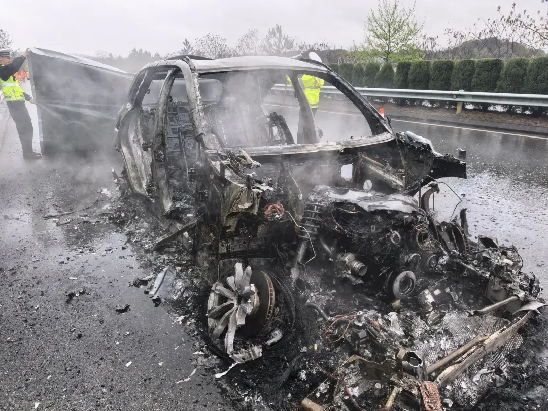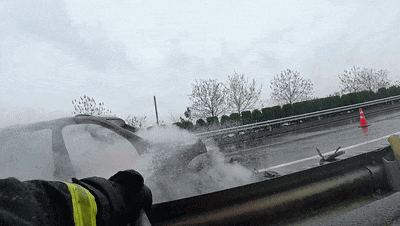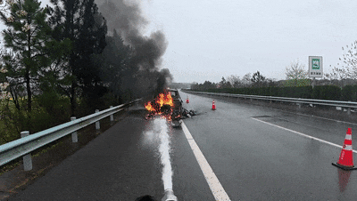 据车主介绍,车辆在行驶时因雨天路滑,车辆轮胎突然打滑失控,猛烈撞击中间隔离护栏后旋转数圈,最终停在了右侧车道后冒烟起火,车主立即呼喊车上人员迅速下车,并撤离至护栏外的安全地带,随后拨打了报警电话。