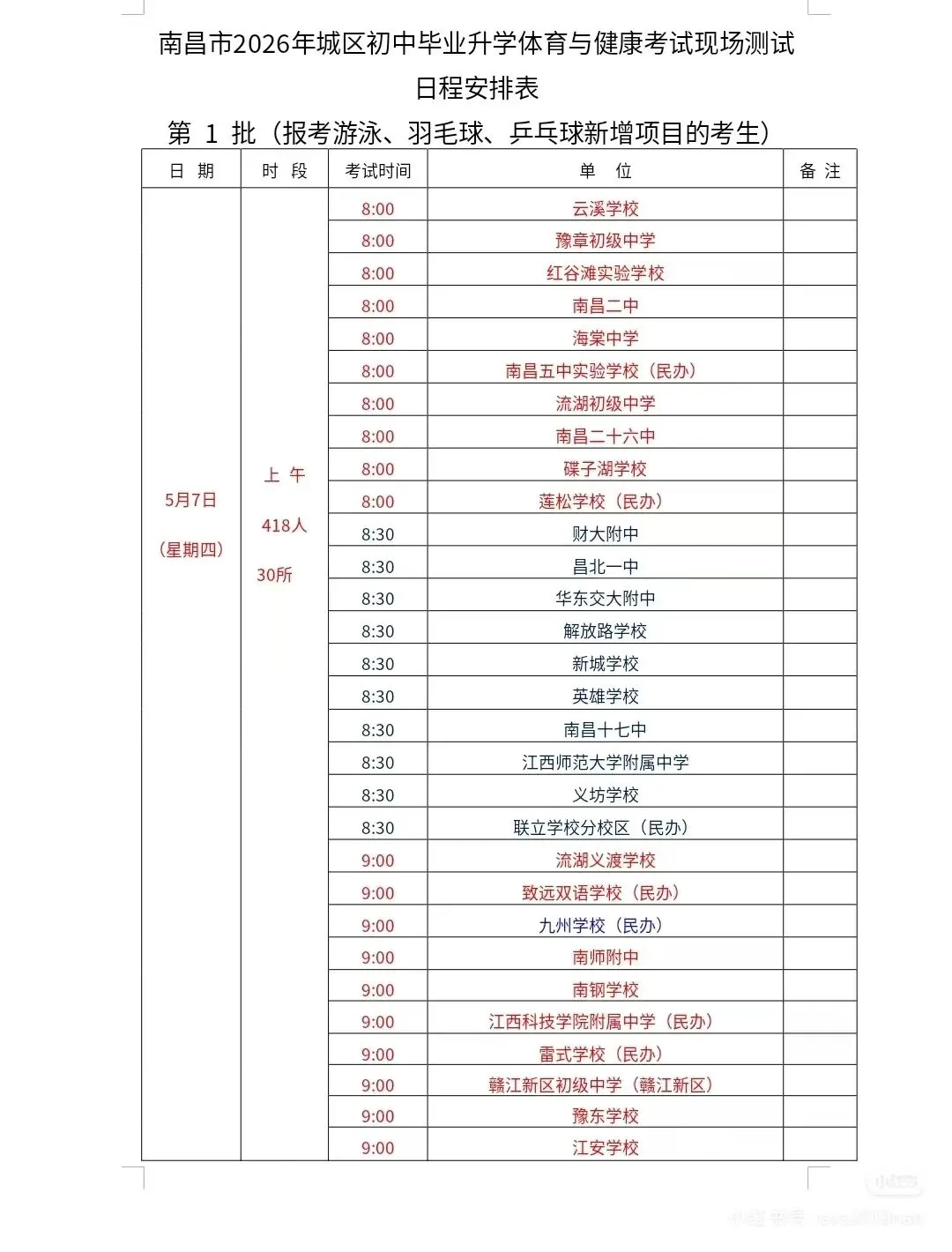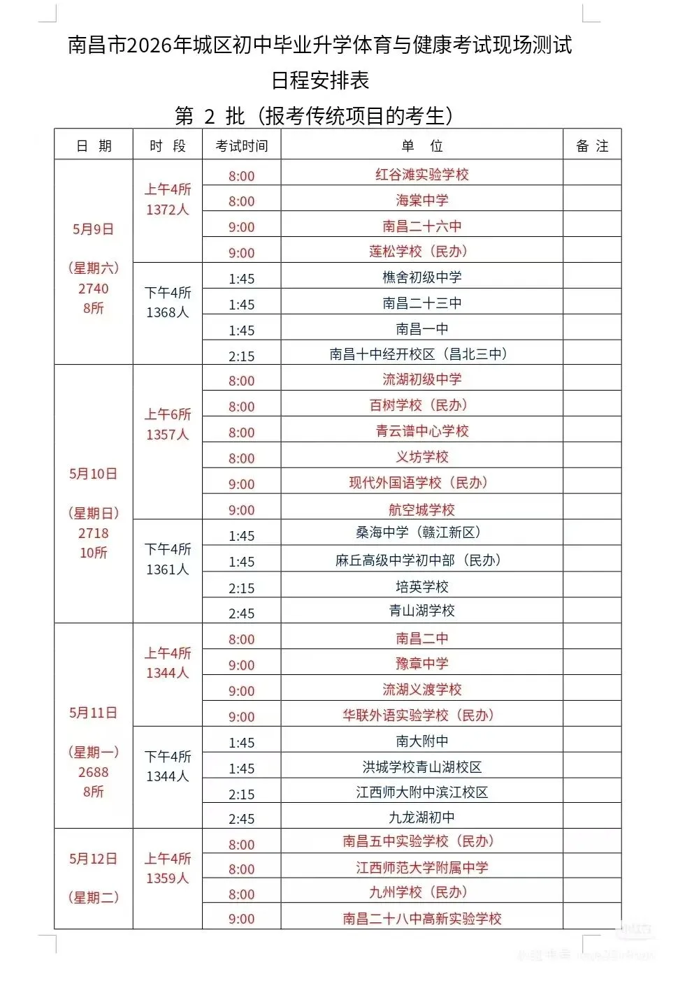南昌市考试院今日发布《南昌城区2026年体育中考现场测试时段电子抽签结果》,请各位考生做好考前准备,还没有准备好的赶紧冲起来!!!