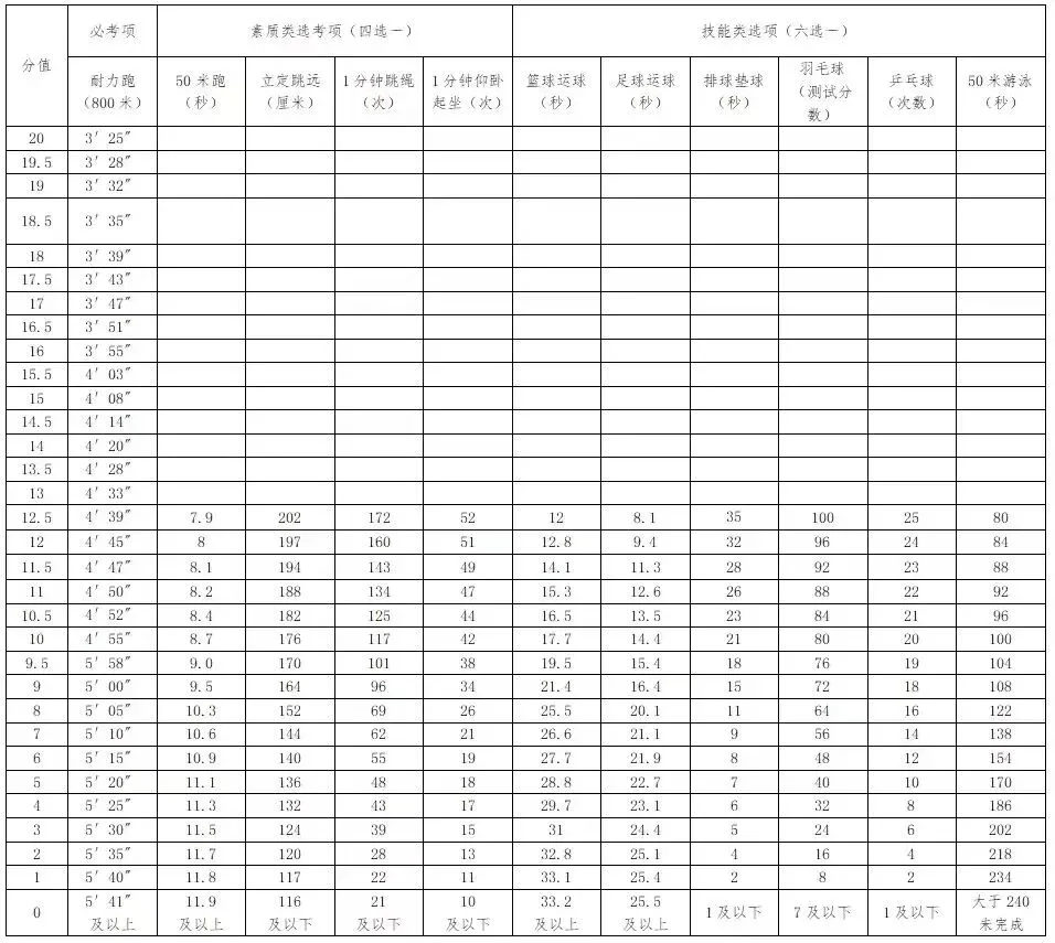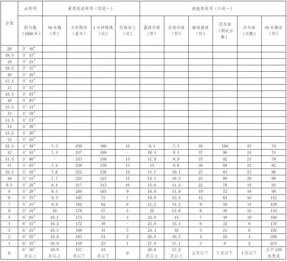 2026年南昌市初中毕业升学体育与健康考试现场测试项目评分表(男)
