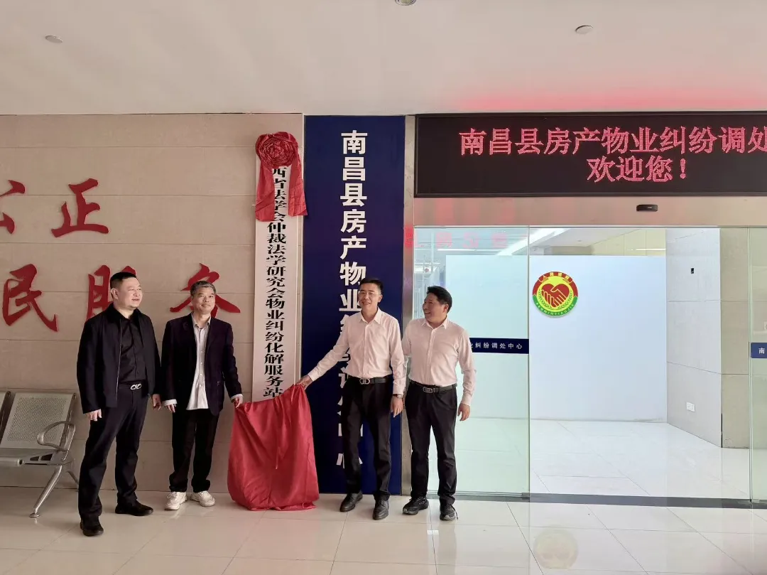 签约后,与会领导为江西省法学会仲裁法学研究会物业纠纷化解服务站、南昌县物业费和物业共有资金提存公证监管服务点、南昌县物业纠纷仲裁专属通道服务站三大平台同步揭牌,形成省级专业指导、县域公证监管、仲裁快速服务的一体化支撑体系,为物业纠纷化解提供全流程法律保障。