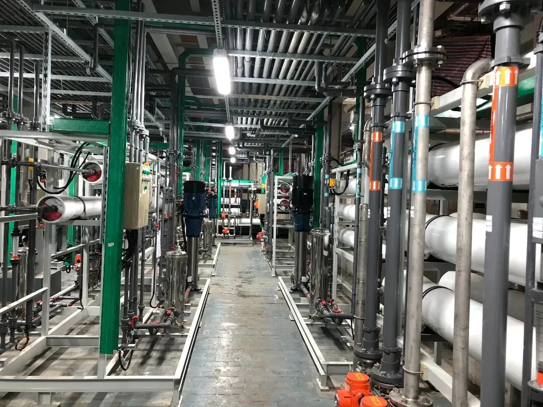 为减少含重金属废水的排放,投资4100余万元新建一套废水处理设施,日处理水量达1200吨,采用先进的膜技术和蒸发技术,按照性质、水量、排放速率进行优化,将之前的9类废水调整为12类废水,经过调蓄使废水均质化,提升了系统的处理效率,同时大幅减少了化学品的添加量。废水分别经过预处理后,通过相应的二/三级反渗透系统,透过液水质良好,可满足生产工艺的用水水质要求;浓缩液经过DTRO(碟管式反渗透)回收水后再进一步浓缩。最大限度地回收中水,使其转变为能满足工艺要求的纯水,回用率达60%以上。
