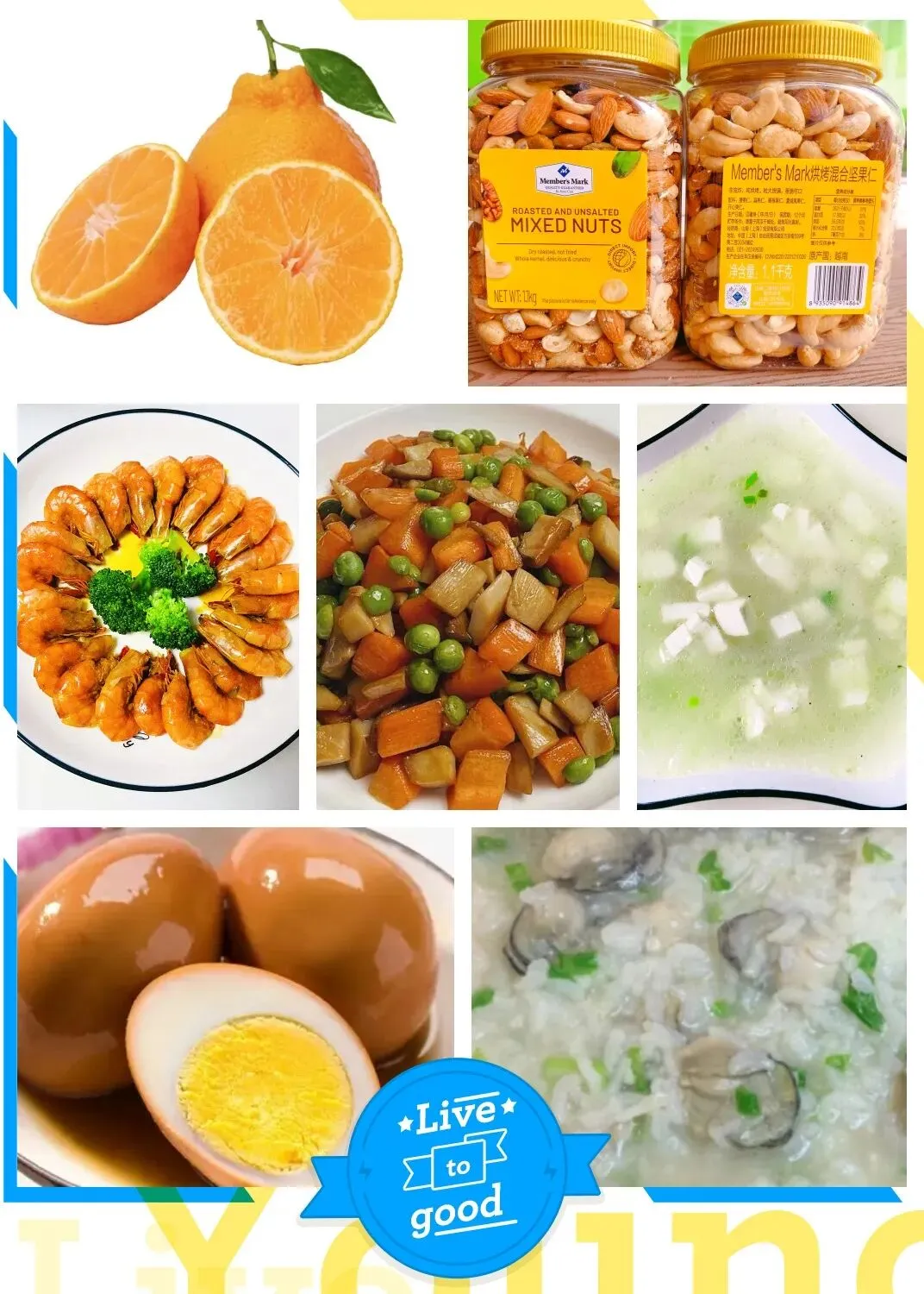 卤蛋(过敏餐:苏打饼干)、生蚝粥(过敏餐:瘦肉粥)(生蚝、青菜、瘦肉、大米)