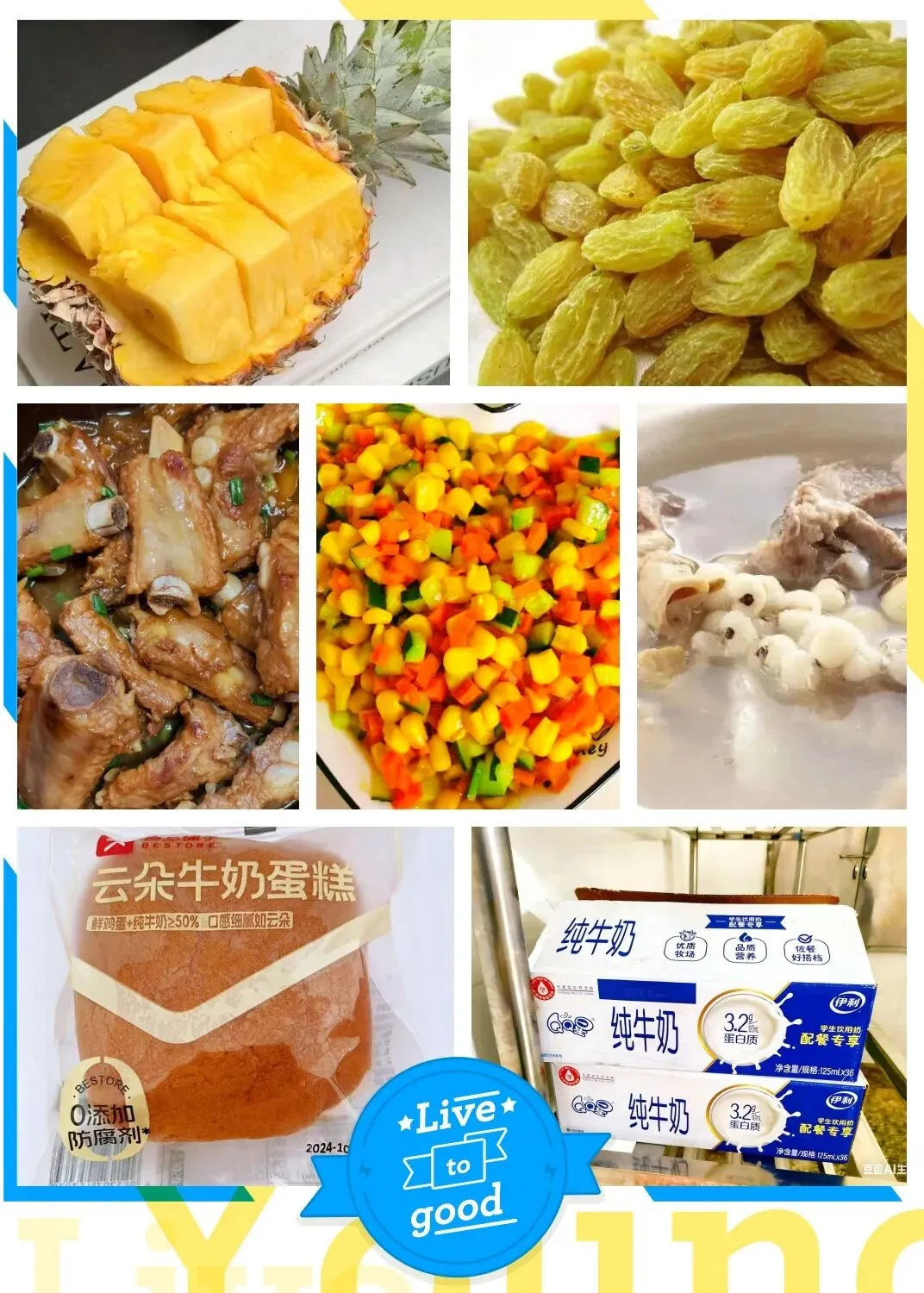 香米饭、洋葱排骨煲(洋葱、排骨、灯笼椒)、什锦玉米粒(玉米、黄瓜、胡萝卜)、薏米鸭肉汤(薏米、鸭、枸杞)