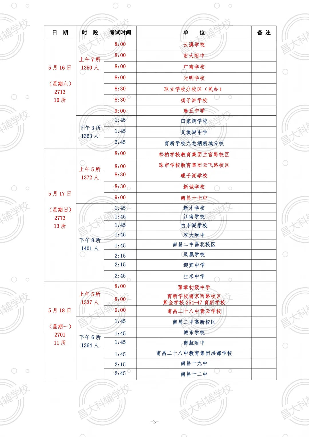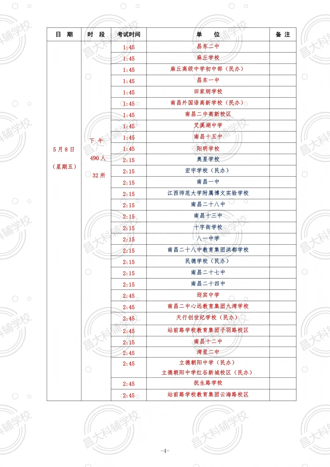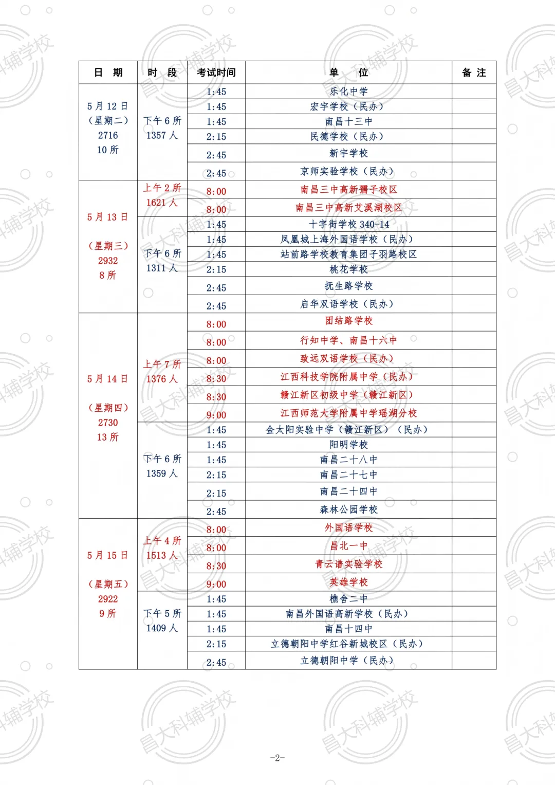 2026南昌中考体育各校考试日程安排如下: