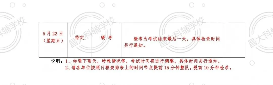 缓考安排在实际考试的最后一天。因雨天停考,考试时间另行通知,最终以官方发布为准。