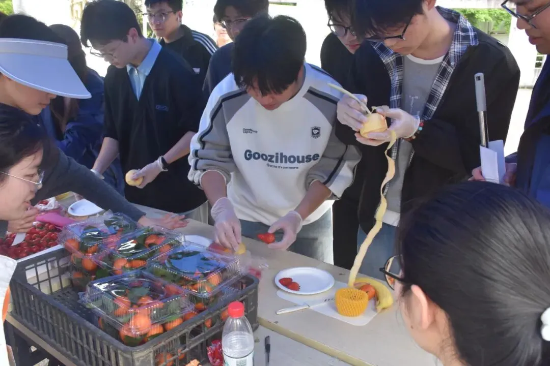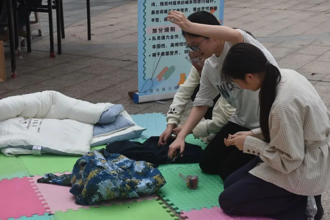 本次大赛设置“缝衣叠被”、“极速拼途”、“同心笔迹”、“环环相扣”、“果艺匠心”五大关卡。参赛队伍以“男生寝室+女生寝室”组成的八人小队为单位,展开了一场精彩的劳动技能与团队协作的比拼。